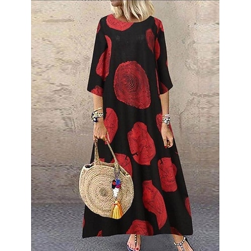 Damen Maxidress Casual kleid Baumwoll-Leinenkleid A Linie Kleid Elegant Stilvoll Basic Urlaub Täglich Verabredung Lockere Passform Graphic 3/4 Ärmel Rundhalsausschnitt Schwarz Weiß Gelb Rote Sommer