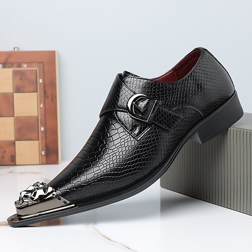 stivaletti da uomo in similpelle rossa con stampa serpente e punta metallizzata: calzature natalizie alla moda per feste ed eventi invernali