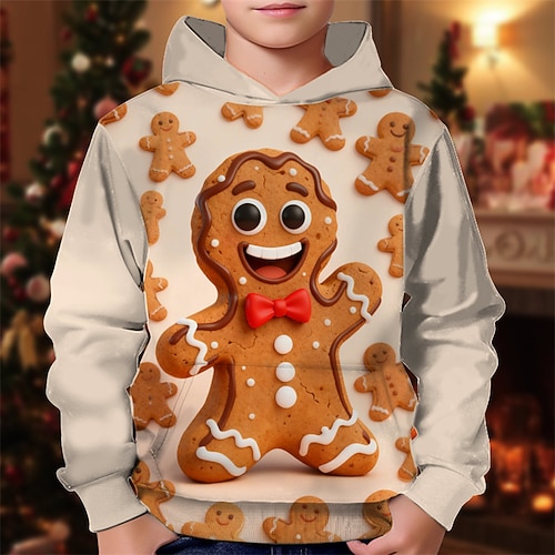 Natale Ragazzi 3D Grafico Omino di marzapane Felpa con Cappuccio Manica Lunga Primavera Autunno Moda Streetwear Bambini 4-12 Anni Con cappuccio All'aperto Casuale Quotidiano Vestibilità regolare