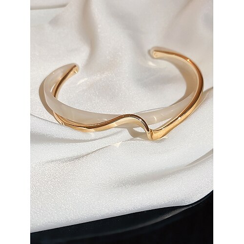 Bracciale rigido da donna in oro e resina, elegante gioiello con polsino dal design ondulato per feste, matrimoni e uso quotidiano