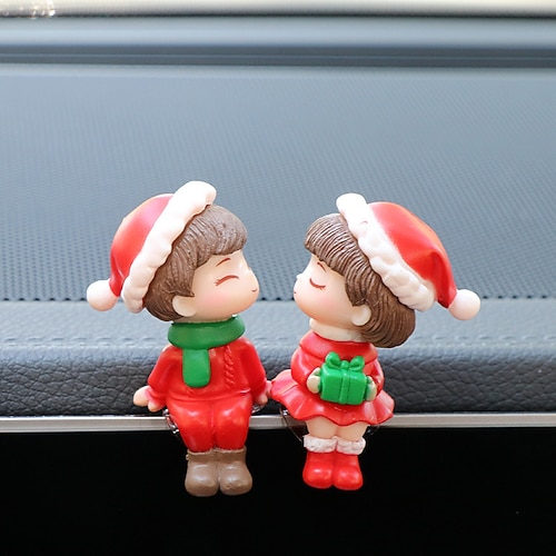 Ornamento natalizio per auto - bambola di coppia festiva con palloncino rosso, decorazione in resina per cruscotto per le celebrazioni delle feste, decorazione per interni auto, decorazioni natalizie,
