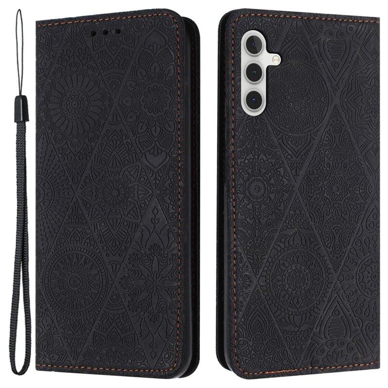 Mobilskal till Samsung Galaxy A55 5G Imprignerat KonstLäder Ställ- Svart