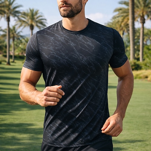 Per uomo Grafico Marmo T-shirt da corsa Maglia a compressione Maglia atletica Sport in alto Estate Manica Corta Asciugatura Rapida Traspirante Allenamento in Palestra Camminata Jogging Blu Nero Bianco