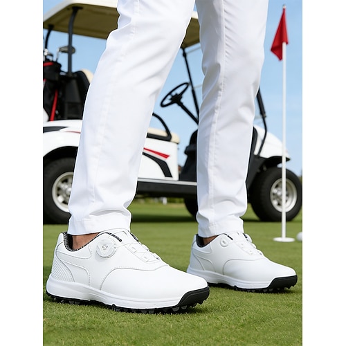 scarpe da golf sportive bianche da uomo, tomaia traspirante, trazione antiscivolo, comfort leggero, perfette per il campo da golf e l'allenamento