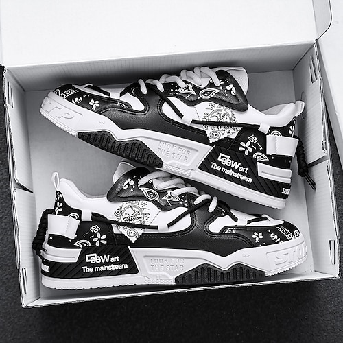 sneakers sportive da uomo bianche e nere, in similpelle traspirante, design trendy a blocchi di colore, ideali per stili di vita attivi, perfette per palestra e attività sportive
