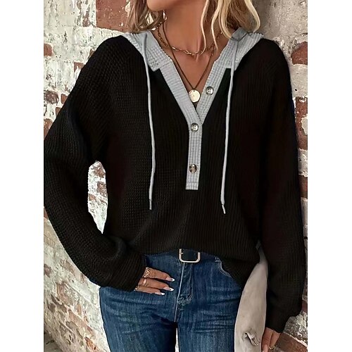 Per donna Blusa Tinta unica Elegante Casual Manica Lunga Con Cappuccio Top Regolari Quotidiano Patchwork Bottoni Nero Bianco Rosa Grigio Primavera Autunno Inverno