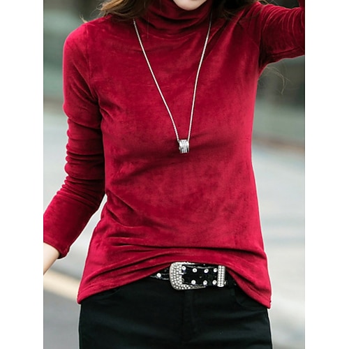 Per donna Blusa Tinta unica Elegante Essenziale Casual Manica Lunga Dolcevita Top Regolari Quotidiano Arricciato Nero Rosso Viola Verde Grigio Autunno Inverno