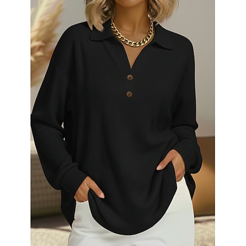 Per donna Blusa Tinta unica Elegante Casual Manica Lunga Scollo a V Top Regolari Quotidiano Bottoni Nero Bianco Vino Arancione Primavera