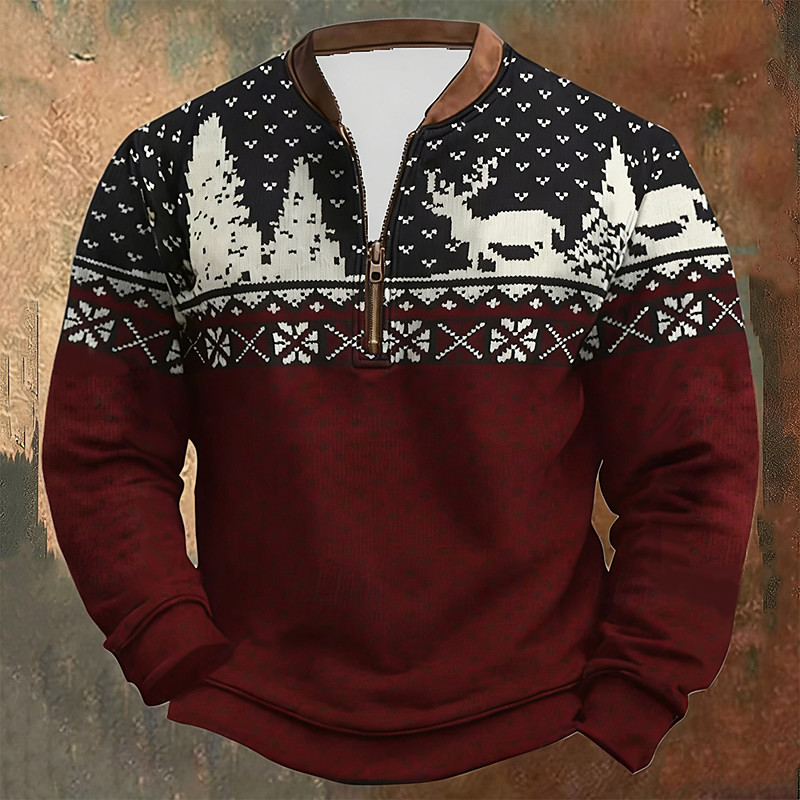 Christmas Men's Reindeer Printing Quarter Zip Sweatshirt Sweatshirts Long Sleeve Sweatshirt Half Zip Vintage Retro Print Holiday Going out Print Fall Winter