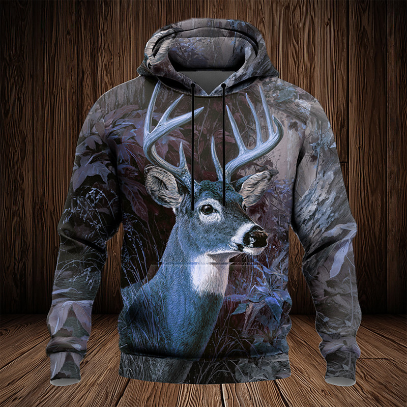 Men's Deer Hoodie Jacket Sweatshirt Fantasy Hunting All Over Print Zip Streetwear Vacation Going out Blue Green Zipper Fall Winter Designer S M L XL XXL XXXL