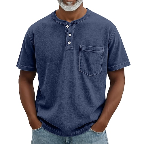 Per uomo Maglia Henley Camicia 100% cotone lavaggio acido Maglietta Manica Corta Retrò Vintage Casual Cardigan con Bottoni Tasca Lavato Henley Casuale Estate Primavera Autunno Marrone scuro Nero Rosa