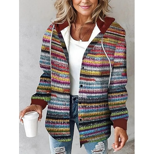 Per donna Camicia Grafico Plaid Vintage Tropicale Elegante Manica Lunga Con Cappuccio Top Regolari Lavoro Quotidiano Ferie Bottoni Bianco Marrone chiaro Marrone Verde Grigio chiaro Primavera Autunno