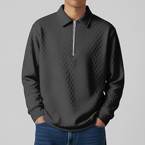 Per uomo Felpa Pullover Polo con zip Vacanza Streetwear Con cerniera Manica Lunga Moda Essenziale Semplice Moda Primavera Autunno Tutte le stagioni Vestibilità comoda Nero Bianco Kaki Grigio scuro