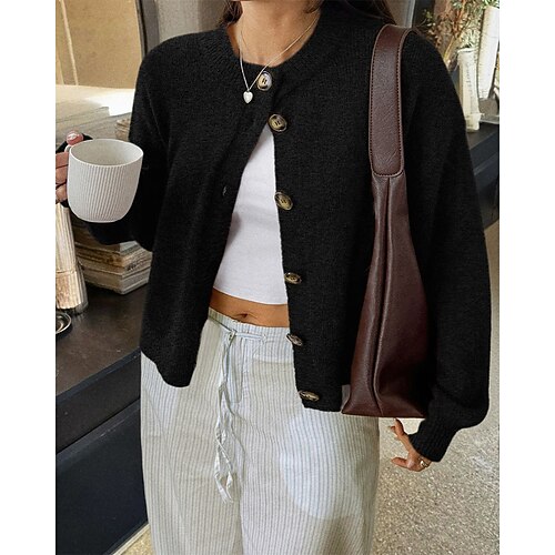 Per donna Felpa Cardigan Elegante Moda Streetwear Tinta unica Girocollo Bottoni Lavorato a maglia Manica Lunga Top Regolari Maglia All'aperto Quotidiano Ferie Nero Giallo Autunno Inverno