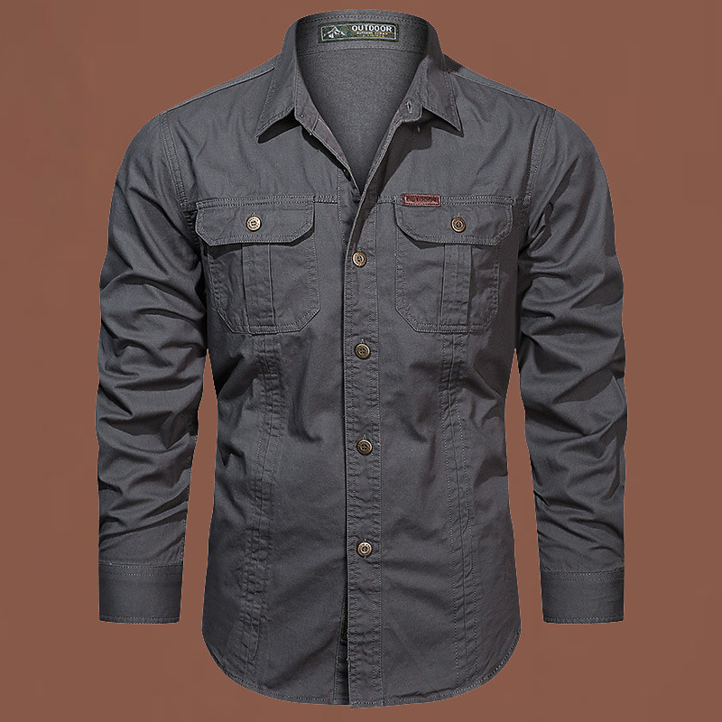 Men's Solid Color Work Shirt Western Shirt Cargo Shirt Long Sleeve Casual Tactical Sports Outdoor Going out Winter Spring Fall Turndown Print Black Grey Black White Army Green Red