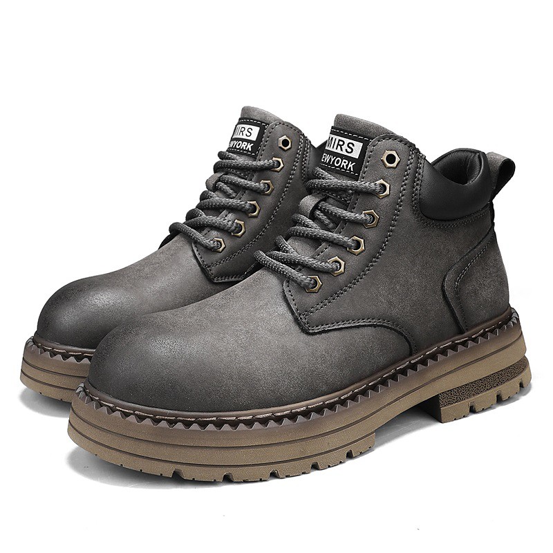 Men's Classic Tan Faux Leather Lace-Up Work Boots – Durable Outdoor Safety Ankle Boots for Construction, Hiking and Daily Wear