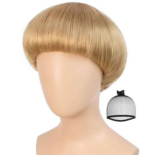 parrucca bionda corta a caschetto da uomo con frangia, parrucche bionde a fungo, parrucca anni '60, parrucche divertenti da uomo per film, Halloween, cosplay, feste in maschera, parrucche bob bionde
