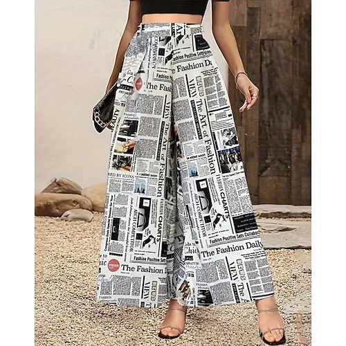 Per donna Gamba larga Pantaloni Eleganti Streetwear Casual Lunghezza intera Naturale Fiore Elastico in vita Stampa Comodo All'aperto Vacanza Uscire Nero Bianco Autunno Vestibilità regolare