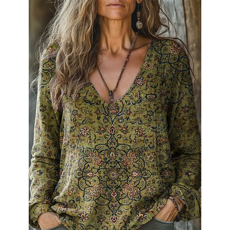 Women's Blouse Floral Bohemia Vintage Long Sleeve V Neck Regular Tops Daily Holiday Print Grass Green Light Green Wine Army Green Red Summer Spring Fall