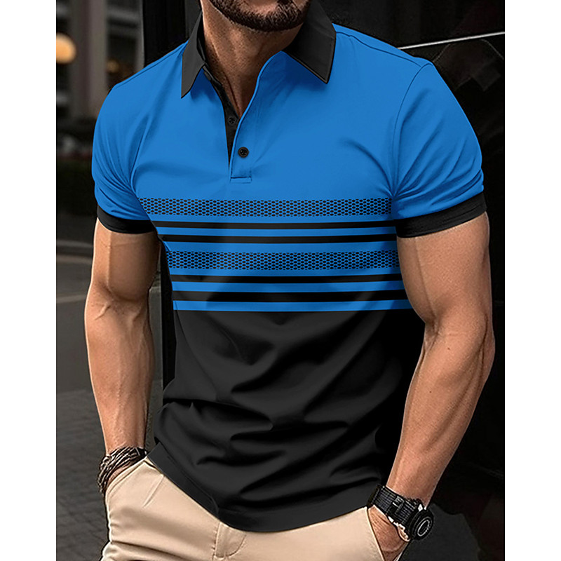 Men's Geometic Line Zip Polo Shirts Short Sleeve Polo Shirts Collared Shirts Business Casual Business Athleisure Wear to work Daily Wear 3D Print Summer Blue Purple Green