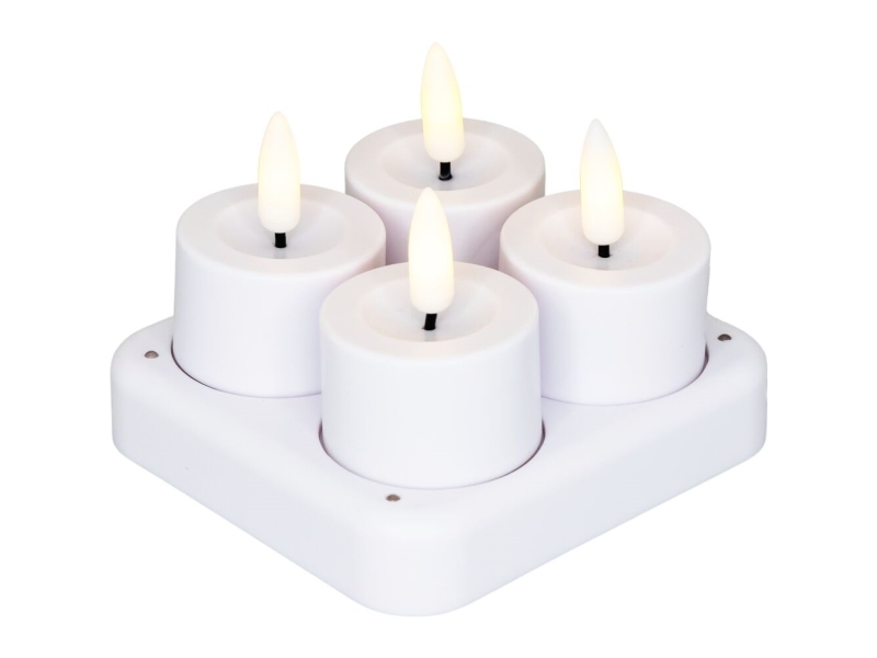 LED-telys, Cozzy, 5 cm, Ø3,9 cm, hvit, plast, oppladbar, 3D-flamme, 4 stk. inkl. lader