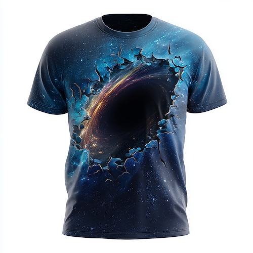 Herren Optische Täuschung Universum 3D T Shirt Kurzarm T-Shirt 3D-Druck Rundhalsausschnitt Hemd Übertrieben Designer Party Täglich Ferien Blau 2# Blau 1# Purpur Sommer Frühling Ganzjahres Bekleidung