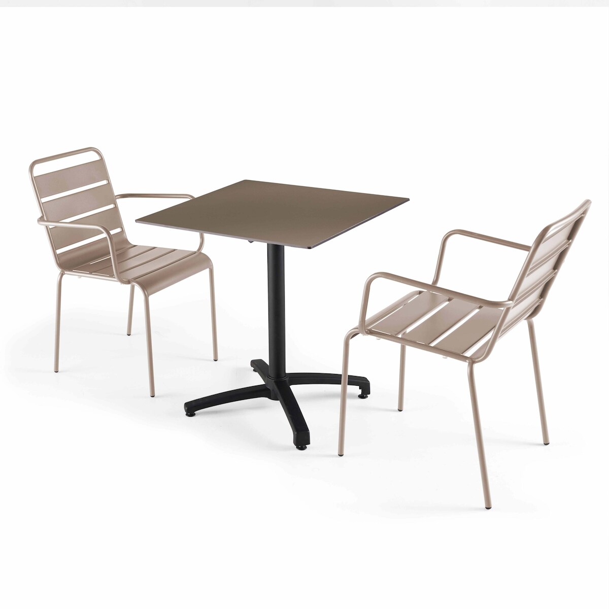 Oviala Business Set aus Tisch 70 cm taupe und 2 Stühlen aus Metall taupe