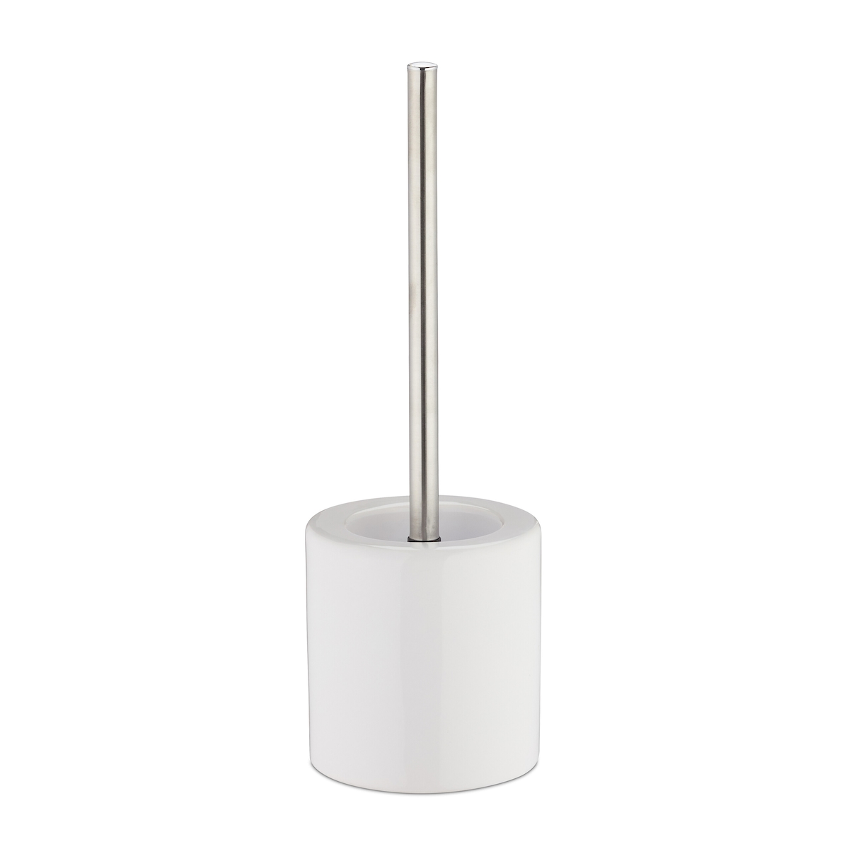 Relaxdays WC Garnitur Keramik, runder Klobürsten-Halter, wechselbarer Bürstenkopf, Bad-Set, HxD 38,5 x 12,5 cm, weiß