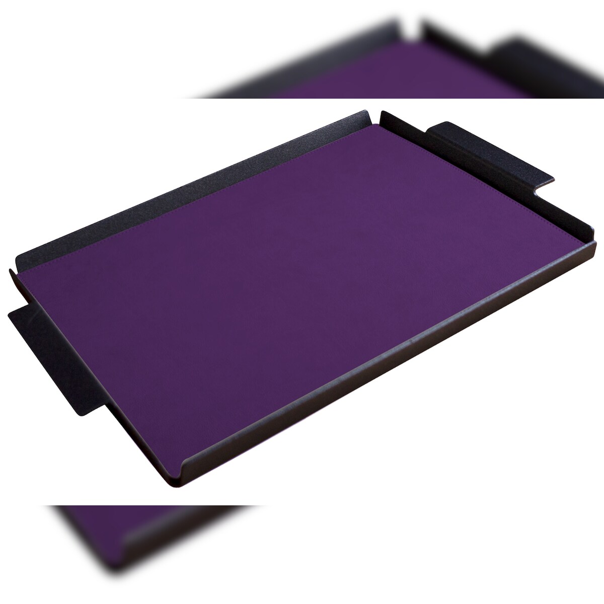 Stil Casa, 6er-Set Serviertabletts, schwarz lackiertes Aluminium, Deckel aus genähtem, laminiertem Polyurethan, 37x53xh. 0,2 cm, Farbe lila.