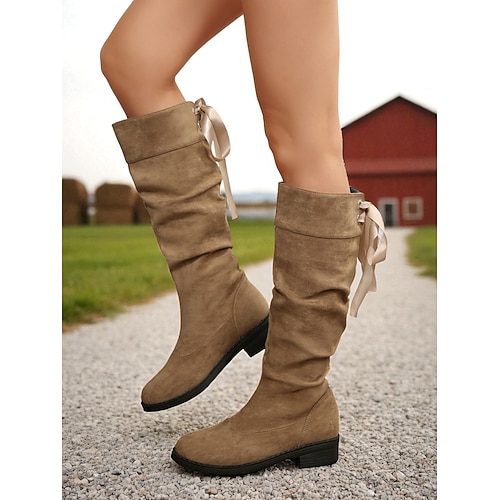 stivali da equitazione alti fino al ginocchio da donna con linguette, tacco basso e comodo design slip-on, scarpe alla moda in stile classico ispirato al western per un abbigliamento casual urbano