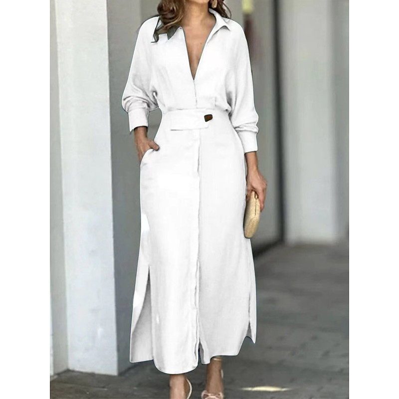 Women's Shirt Dress Long Dress Maxi Dress Pocket Split Daily Date Vacation Active Fashion Shirt Collar Long Sleeve Black White Pink Color