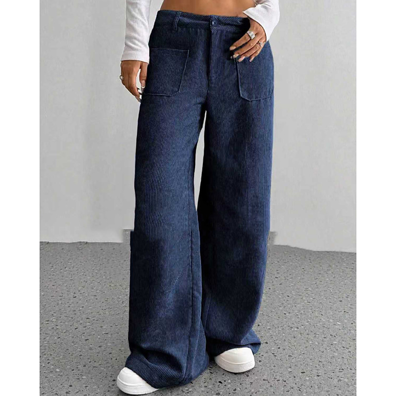 Women's Wide Leg Corduroy Pants Slacks Streetwear Casual Full Length Natural Plain Pocket Elastic Waist Comfortable Street Holiday Weekend Dark-Gray Black Pink Dark Green Fall Regular Fit