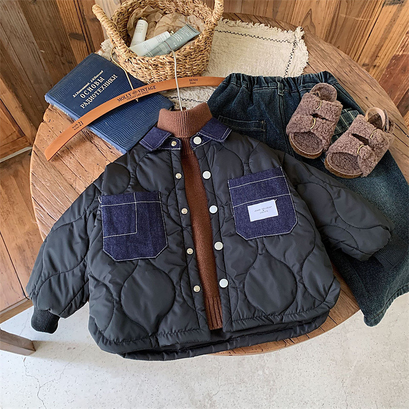 4 Years Boys' Down Jacket Outdoor Jacket Outerwear Color Block Long Sleeve Buttons Keep Warm Coat Outdoor Daily Basic Black Army Green Fall Winter 4 years