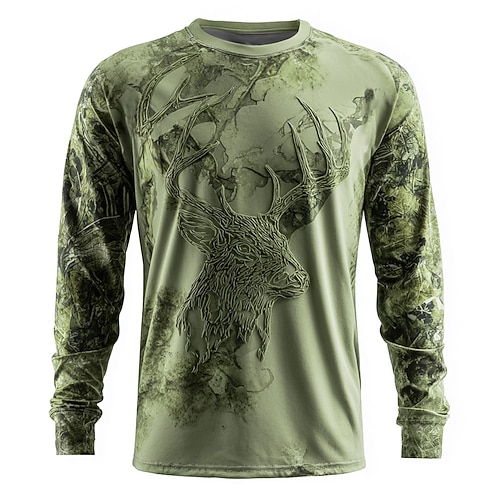 Herren Tarnung 3D Hirsch T Shirt Langarm T-Shirt 3D-Druck Rundhalsausschnitt Hemd Mode Outdoor Straße Sport im Freien Jagd Dunkelbraun Leicht Braun Braun Sommer Frühling Bekleidung S M L XL XXL XXXL