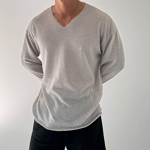 Herren T Shirt T-Shirt Langarmshirt Langarm V Ausschnitt Frühling Herbst Einfach Mode Designer Basic Klassisch Urlaub Straße Ausgehen Schwarz Grau Top T-Shirt für Herren