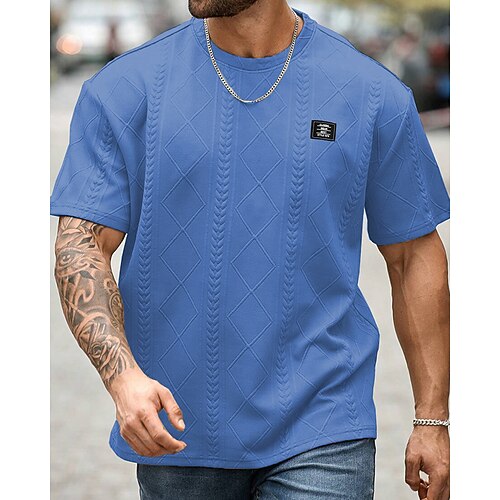 Herren T Shirt T-Shirt Kurzarmshirt Kurzarm Rundhalsausschnitt Sommer Frühling Einfach Mode Designer Basic Jacquard Urlaub Straße Ausgehen Schwarz Weiß Rosa Top T-Shirt für Herren