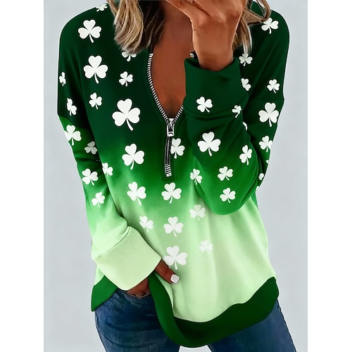 Per donna Felpa Pullover Felpe con cerniera Trifoglio Moda Casual Manica Lunga Girocollo Top Regolari Streetwear Abbigliamento Quotidiano Casuale Cerniera Stampato Verde Primavera