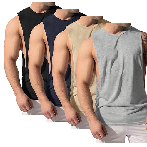 Herren Tank Top Weste Unterhemd Ärmelloses Shirt Ärmellos Rundhalsausschnitt Sommer Ganzjahres Einfach Mode Klassisch Bequem 4 Teile Mehrfachpackung Straße Lässig Sport A B C Top T-Shirt für Herren