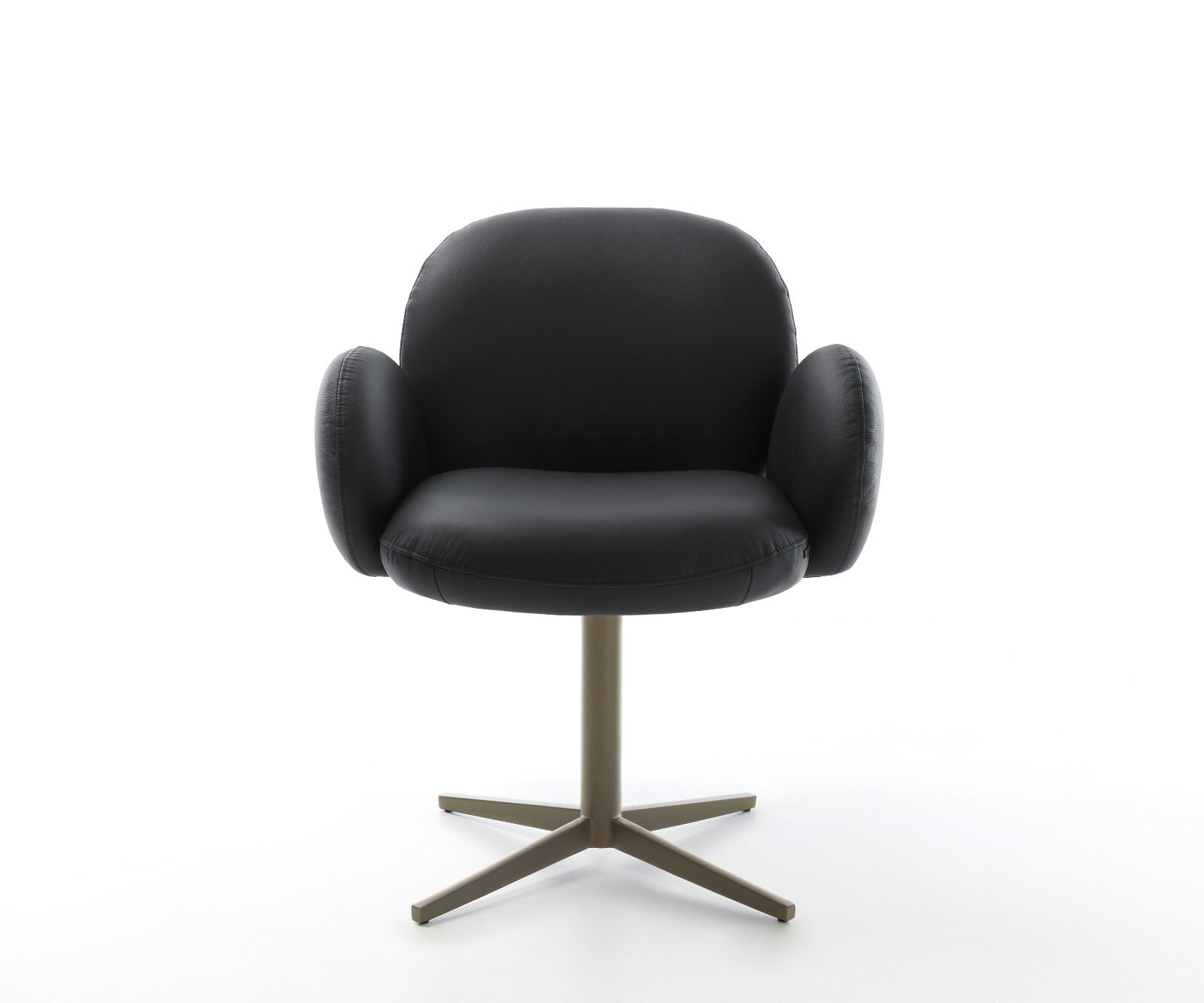 DELIFE Draaistoel Nube-Flex met armleuning echt leer zwart kruispoot afwerking met titanium 360° draaibaar pocketveer kern