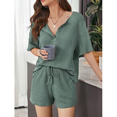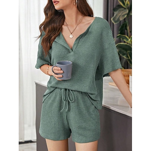 Per donna Set da due pezzi Set di Pantaloncini Manica Corta Scollo a V Tinta unica Moda Streetwear Casuale Quotidiano All'aperto Nero Bianco Giallo Estate Vestibilità regolare