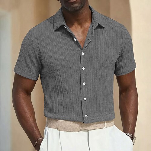 Per uomo Camicia Camicia casual Camicia da Spiaggia Camicia con Bottoni Camicia Jacquard Blu Nero Bianco Rosa Blu marino Manica Corta Semplice Bavero Casuale Abbigliamento casual alla moda