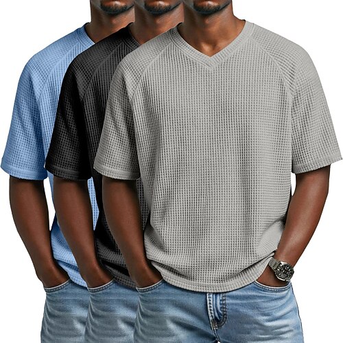 3 pezzi t-shirt da uomo waffle maglietta a maniche corte scollo a V estate tinta unita testurizzata alla moda designer casual multipack maniche raglan casual quotidiano esterno blu bianco maglietta
