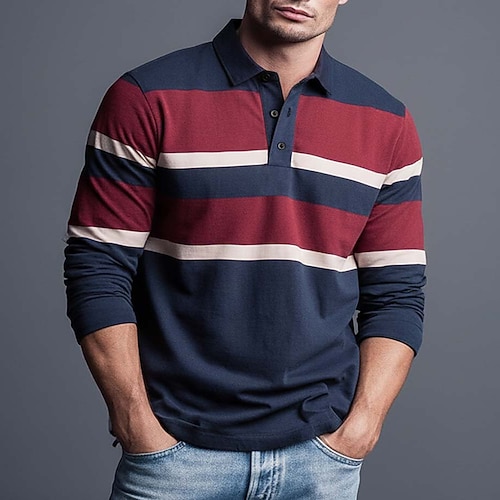 Herren Horizontale Streifen Rugby-Poloshirt Langarm Polo-Shirts Hemden mit Kragen Sportbekleidung Lässig Schule Outdoor Athleisure 3D-Druck Frühling Herbst Winter Rote Blau Purpur