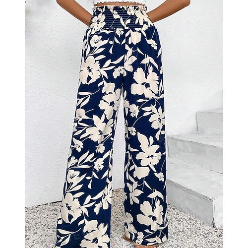 Per donna Pantaloni Eleganti Pantaloni Boho Lunghezza intera Naturale Floreale Elastico in vita Stampato Comodo All'aperto Confortevole Streetwear Uscire blu navy Nero Cachi Estate Vestibilit