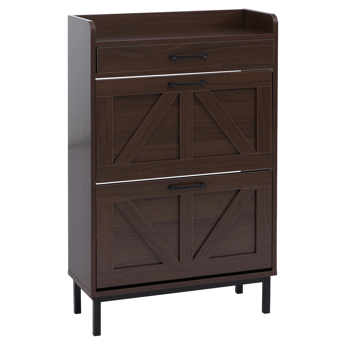 Mendler Schuhkipper HWC-P45, Schuhregal Schuhschrank, 2 Kippfächer Ablage Schublade MDF 95x60x24cm ~ Walnuss-Optik