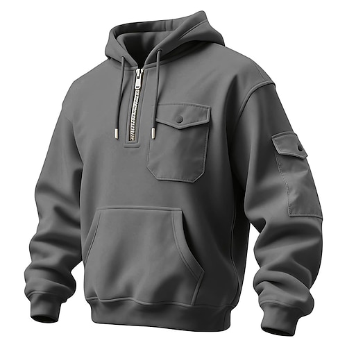 Per uomo Felpa con cappuccio Felpa con cappuccio e cerniera a un quarto Nero Rosso Blu marino Blu Reale Cachi Con cappuccio Liscio Cerniera Tasche Sportivo Giornaliero Per eventi Streetwear
