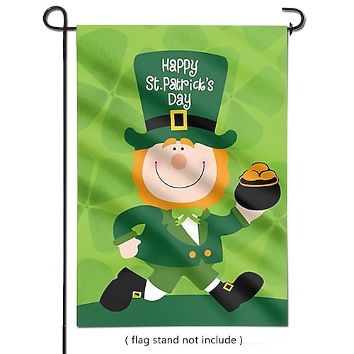 Gartenflagge zum St. Patrick's Day mit Kleeblattmotiv, Koboldmotiv, grün Goldene irische Dekoration, Gartenflagge für die Feier zum St. Patrick's Day.