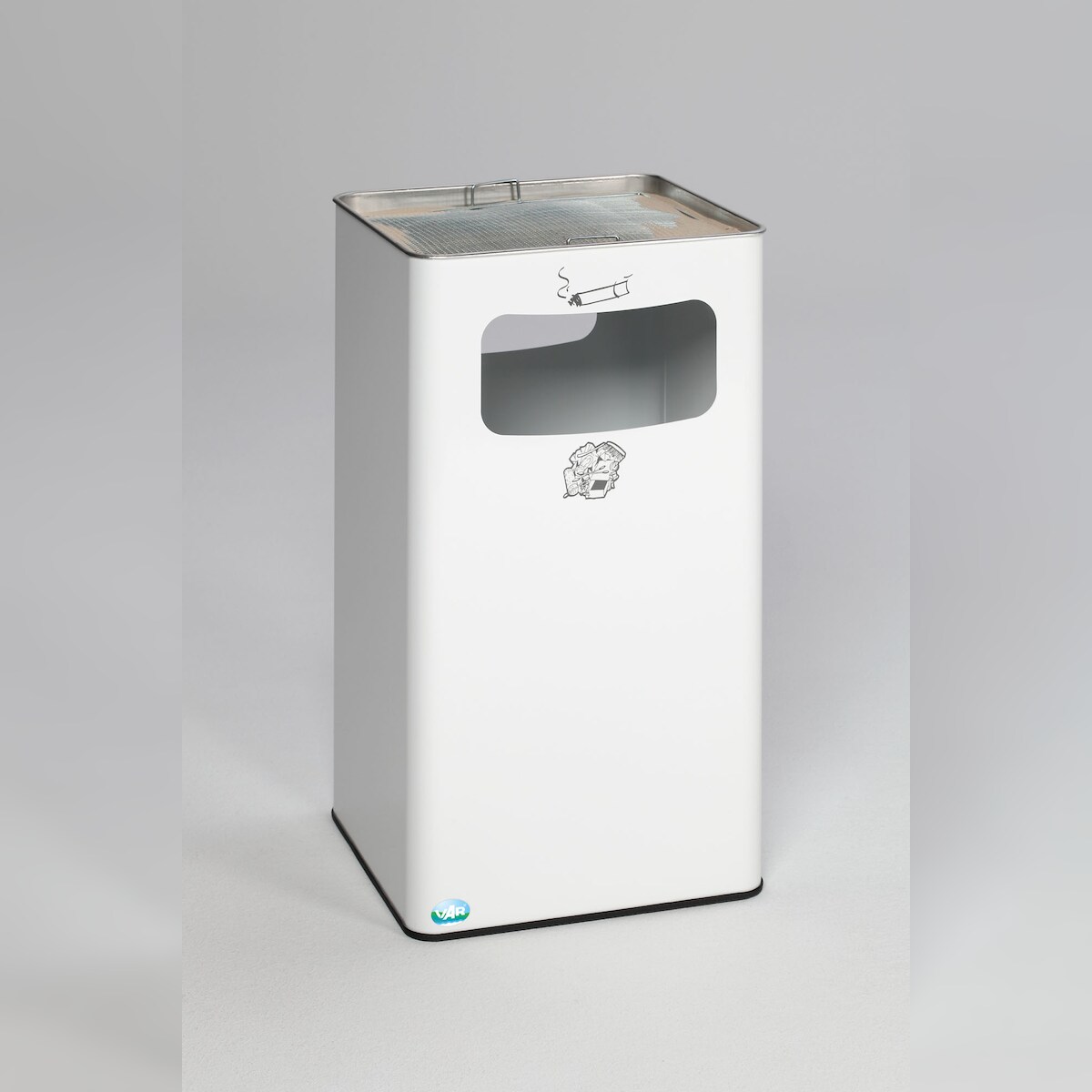 PROREGAL Klassischer Kombiascher eckig | HxBxT 75,5x43x43cm | Verzinkter Stahl | Weiß | Mülleimer Aschenbecher Abfalleimer