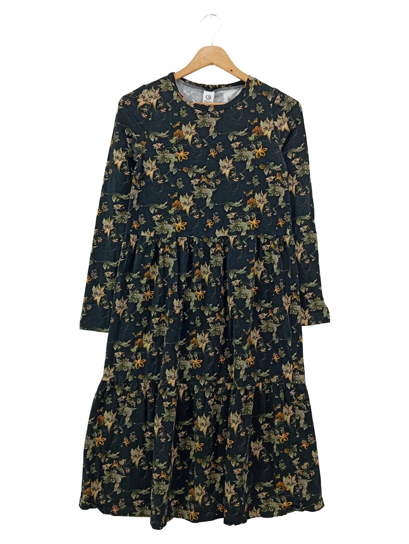 GREEN COTTON Freizeitkleid XS Schwarz Blumenmuster Midi