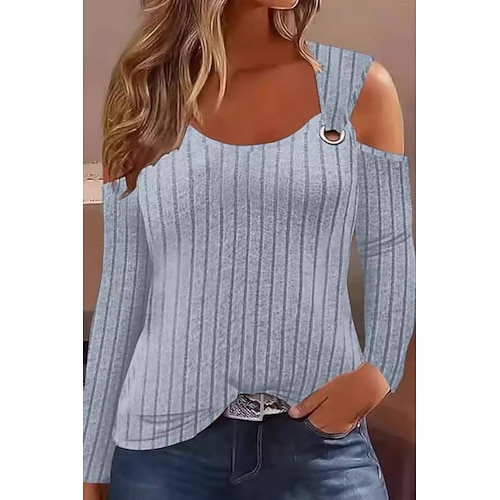 Per donna Blusa Tinta unica Elegante Casual Manica Lunga Spallina Top Regolari Quotidiano Patchwork Nero Rosa Verde militare Blu Cachi Primavera Autunno Inverno
